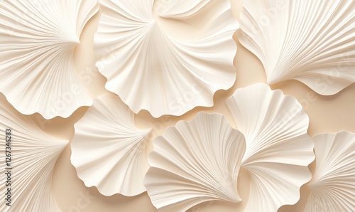 Elegant arrangement of textured ginkgo leaves on a soft beige background, ideal for design