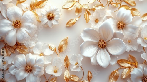Elegant Arrangement of White Flowers and Golden Leaves for Floral Design Inspirations and Aesthetic Decor Concepts