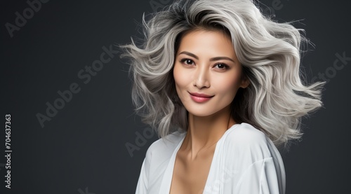 Elegant Asian woman with beautiful white hair