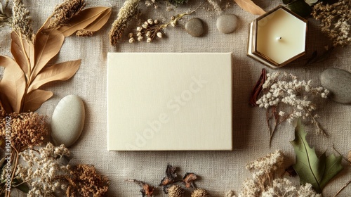 autumn, composition, canvas, candle, leaf, dried, flower, decor, beige, rustic, natural, artistic, aesthetic, arrangement, fall, seasonal, organic, decoration, creative, style, background, generated, ai