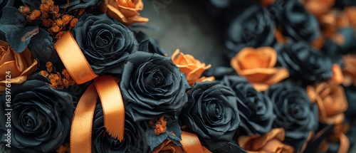 floral, arrangement, flower, elegant, black, orange, rose, decor, ribbon, handcraft, nature, tradition, greenery, personalization, fashion, composition, custom, occasion, invite, lavish, romantic, beauty, assortment, table, display, aesthetic, attracted, ornamental, visual, celebration, sophistication, artistry, season, freshness, bouquet, centrepiece, event, variety, harmony, creativity, contrast, vibrant