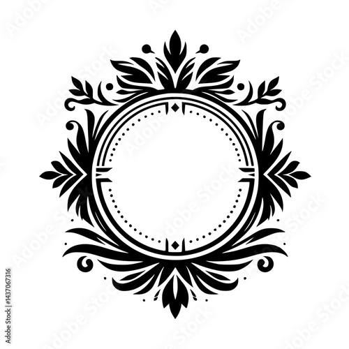 vector, frame, ornate, floral, black, white, design, decoration, vintage, elegant, circle, template, border, flourish, leaf, badge, emblem, logotype, monogram, wedding, invitation, classic, retro, decorative, symmetry