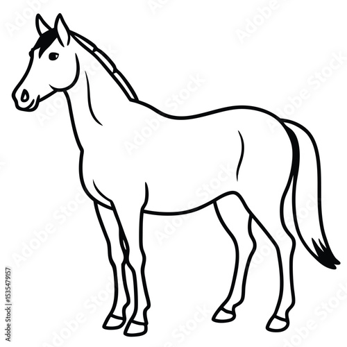 Elegant black and white vector illustration of a standing horse on a plain white background