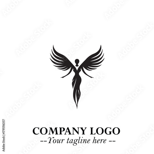 Elegant Black Angel Woman Silhouette Logo Symbol on White Background