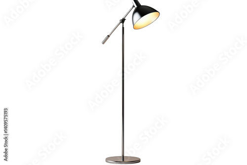 Elegant black arc floor lamp adjustable shade warm light modern design on on transparent background