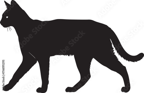 cat, silhouette, black, animal, pet, felino, domestic, mammal, creature, wildlife, graceful, elegant, poise, motion, movement, walking, stepping, forward, side, view, profile, full, body, outline, shape, form, dark, simple, minimalist, icon, graphic, design, element, art, symbol, representation, creeping, stalking, hunter, curiosity, alert, aware, athletic, sleek, powerful, independent