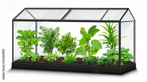 Elegant black glass terrarium showcasing thriving indoor plant arrangement
