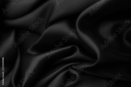 Elegant black satin silk with waves, abstract background.