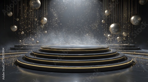 Elegant Black Stage with Bronze Floral Backdrop for Premium Products