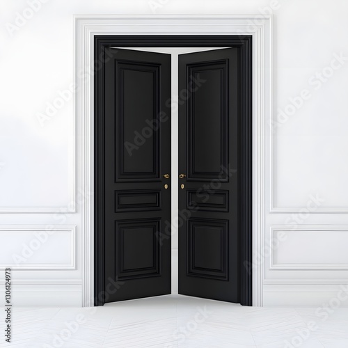 door, black, fancy, living room, interior, architecture, design, home, house, entrance, modern, residential, elegant, luxury, closed, wooden, frame, white, background, minimalist, empty, entranceway, decor, opening, hallway