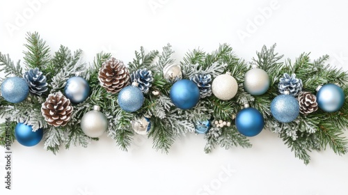 christmas, winter, decoration, holiday, garland, blue, silver, ornament, pine cone, greenery, festive, seasonal, joy, celebration, sparkle, snowy, nature, arrangement, elegant, christmas, beauty, cheerful, tradition, party, decor, indoor, cosy, inviting, vibrant, focal point, shiny, tranquil, muted, color palette, frosty, warmth, family, gathering, event, stylish, aesthetic, charme, texture, contrast, artsy, design, calmness, ambience