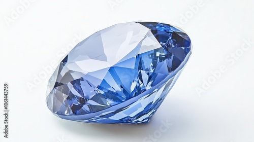 Elegant blue diamond on white background reflecting light and luxury
