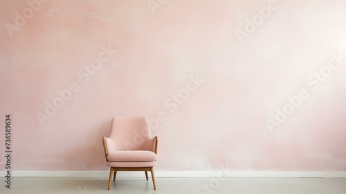 Elegant blush Chair in a light Room. Blank Wall for Mockup Templates