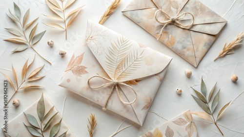 Elegant Botanical Envelopes with Dried Leaves and Natural Twine Accents for a Rustic Wedding or Special Occasion