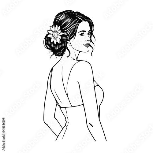 bride, elegant, reddening, coiffure, flower, beauty, femininity, portrait, nature, style, wedding, fashion, romance, grace, chic, happiness, confidence, artistry, illustration, simplicity, floral, cute, soft, charme, portraiture, calmness, classic, love, celebration, engagement, joyful, delicate, serene, artistic, design, black-and-white, outline, vignetting, decoration, atmosphere, personal, stylish, imagery, aesthetic, graceful, lovely