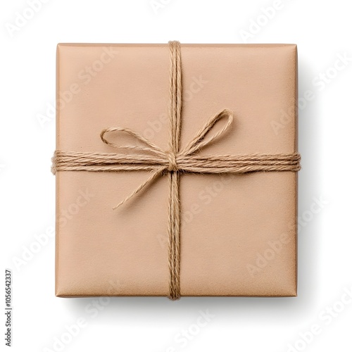 Elegant Brown Gift Box Wrapped in Kraft Paper and Tied with Twine on White Background