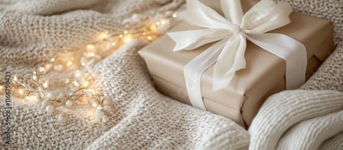 elegant, brown, gift, box, recycled, white, ribbon, glowing, light, soft, beige, blanket, festive, occasion, holiday, decoration, cardboard box, present, luxury, surprise, celebration, design, texture, arrange, shiny, wrapping, stylish, environmentally friendly, cosy, contrast, warmth, classic, hand-made, accessory, seasonal, gift, adornment, beautiful, cheerful, environment, special, detailed, winter, joyful, party, create