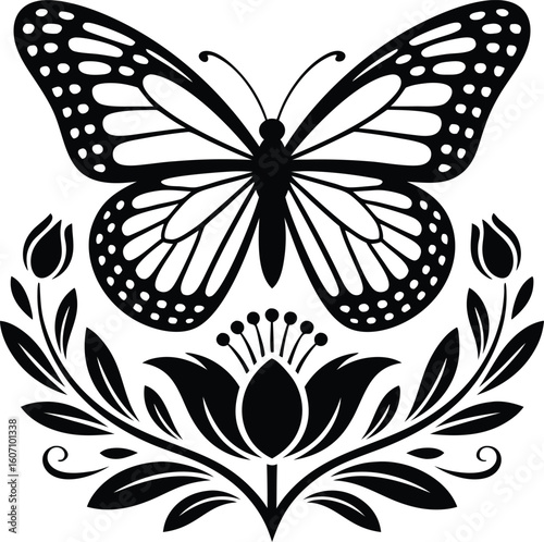 butterfly, flower, silhouette, black-and-white, decorative, floral, nature, tattoo, art, drawing, swirl, flourish, summer, wing, monochrome, sticker, engraving, line art, clip art, swallowtail, beauty, transformation, animal, floral pattern, garden, elegance, wildlife, natural beauty, delicate, intricate, pattern, ornamental, springtime, nature scene