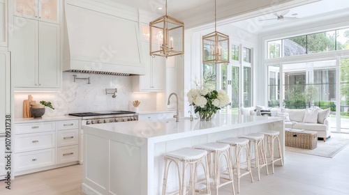 california, kitchen, white, cabinet, shaker, island, modern, design, natural, light, home, decor, seating, area, lounge, cosy, roomy, interior, elegance, open, space, contemporary, cooking, improvement, relaxation, flooring, furniture, appliance, counter, aesthetic, bright, colours, ventilation, dining, living, cabinetry, decoration, stylish, architecture, layout, family, fixture, flower, basket, comfort, chic, minimalist, principle, concept