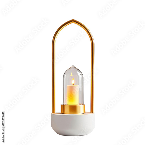 Elegant candle lantern with golden arch design and soft glowing flame, perfect for enhancing ambience and adding warmth to any modern interior space
