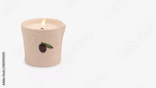 Elegant candle with olive design, adding warmth to any room in a minimalist setting.