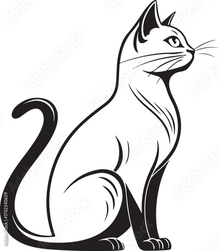 Elegant Cat Vector Illustration, Graceful Feline Silhouette, Pet Animal Drawing, Minimal Line Art Style Design