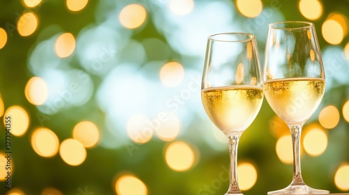 Elegant champagne toast with sparkling bokeh for celebrations and festive gatherings