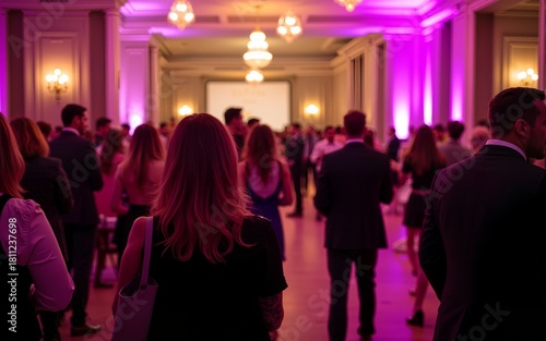 Elegant Charity Gala with Networking Guests at Night Event. High quality