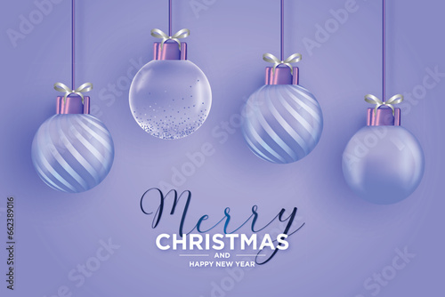 elegant christmas card with realistic pink christmas balls