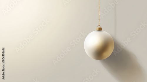 christmas, ornament, bauble, holiday, decoration, festive, seasonal, celebration, winter, gold, white, minimalist, elegant, luxury, sophisticated, background, neutral, shadow, lighting, chain, hanging, single, isolated, classic, modern, simple, clean, style, design, space, copy space, greeting, card, invitation, website, banner, poster, advertisement, marketing, editorial, creative, artistic, studio shot, closeup, detail, ornate, metallic, shiny