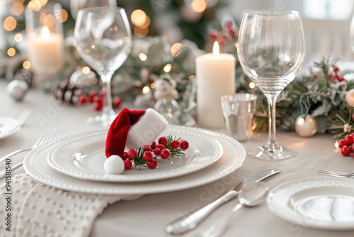 christmas, table setting, holiday, festive, dinner, decoration, elegant, dinnerware, candlelight, celebration, party, decor, red berry, wine glass, holiday season, silverware, seasonal, cosy, christmas dinner, ornament, dining, luxury, place setting, winter, christmas lights, warm, inviting