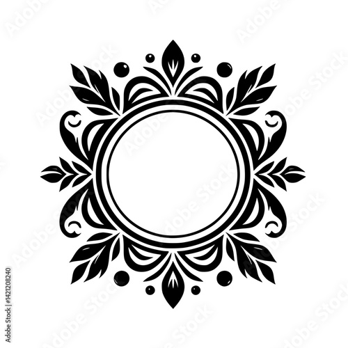 vector, frame, floral, ornament, circle, leaf, black, white, elegant, design, vintage, decorative, border, flourish, label, emblem, logotype, invitation, monogram, wedding, calligraphic, botanical, retro, classic, badge