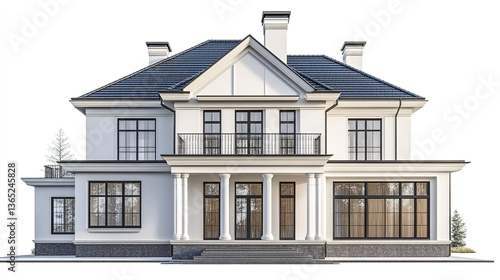 Elegant classic house with columns and large windows on white background