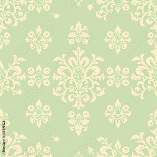 Elegant Damask Seamless Pattern: Pale Green and Cream Vintage Floral Design