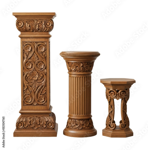 Elegant decorative columns home interior wooden design artistic style isolated on transparent background