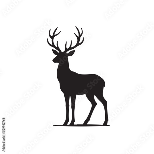 Elegant Deer Silhouette with Antlers Standing in Natural Pose