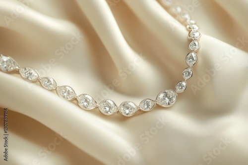 Elegant diamond necklace on luxurious beige silk, showcasing exquisite craftsmanship and sparkle.