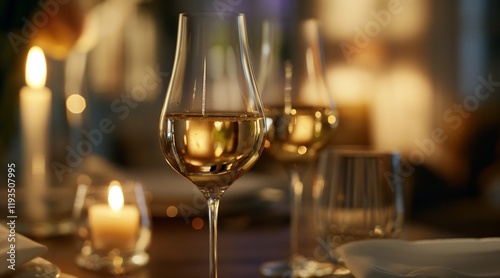 Elegant Dining Ambiance with Wine Glasses and Candlelight