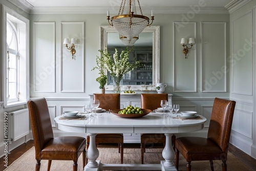 Elegant Dining Room Design with Harmonious Frame Layout in Soft White and Solid Wood Decor