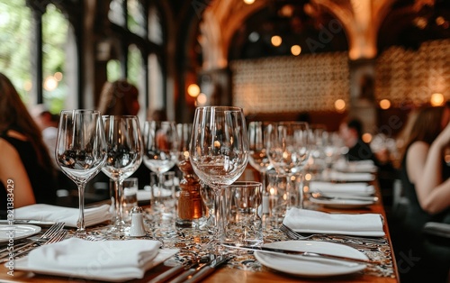 table, setting, dining, elegant, eatery, goggles, cutlery, napkin, candle, room, interior, people, event, celebration, dinner, lunch, ambience, sophistication, hospitality, luxury, decor, service, light, warm, refined, posh, modern, vintage, decoration, sophisticated, formal, fine, food, drink, party, gathering, occasion, tableware, ceremony, guest, life events, background, blurred