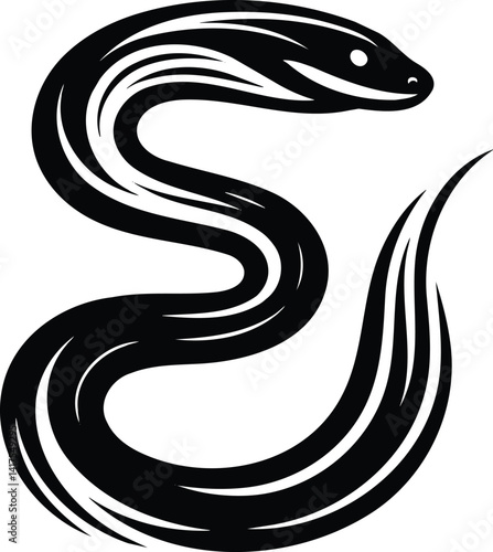 Elegant eel silhouette with subtle motion lines in sinuous curve