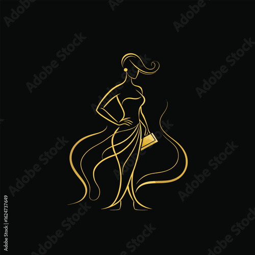 Elegant Fashion Silhouette of Woman with Flowing Hair – Golden Lines