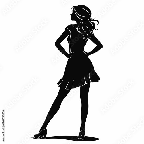 silhouette, woman, fashion, body, vector, black, model, beauty, lady, shadow, people, illustration, person, dancer, standing, hair, dance, 1, posing, dancing, pose, naked, figure, dress, studio