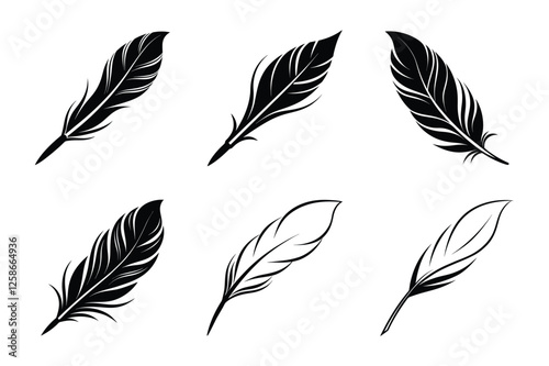 Elegant Feather Pen Set - Hand-Drawn Vintage Quill Ink Writing Illustrations for Calligraphy and Tattoo Art