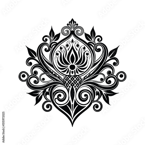 Elegant floral damask ornament in black and white suitable for decorative design projects