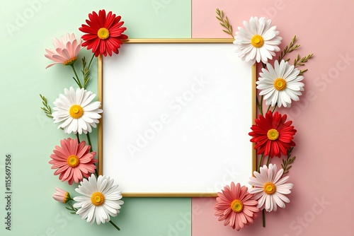 Elegant Floral Frame with Daisies and Cosmos on Soft Pastel Background for Seasonal Designs