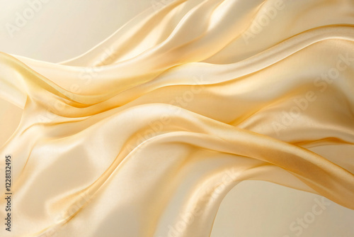 Elegant Flowing Silk Fabric with Delicate Golden Folds and Soft Texture, Luxurious Abstract Textile Background with Pastel Tones