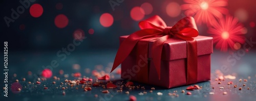 Elegant gift box, single firecracker, festive bow, festive, surprise, new year