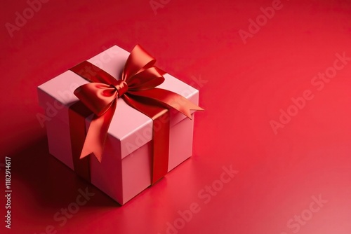 Elegant gift box with red ribbons on a crimson background, red ribbon, decorative gift, gift wrapping