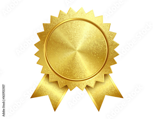 Elegant gold foil award seal with a textured metallic surface starburst edges and ribbons.